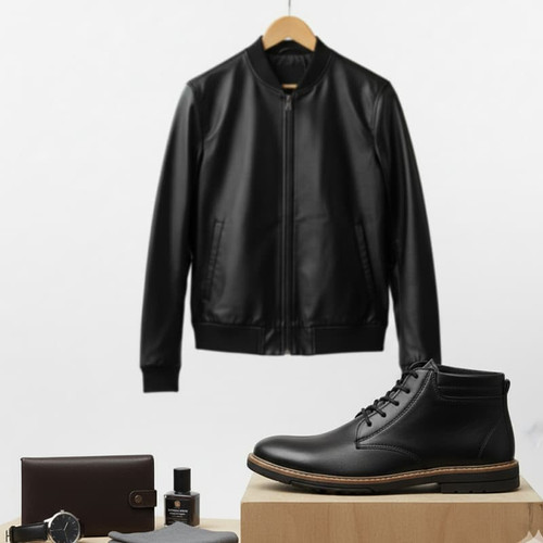 پکیج کاپشن چرم مدل Artim و نیم بوت cat مردانه مدل Rivari