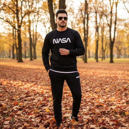 ست تیشرت شلوار آستین بلند مشکی سفید NASA مدل 1939