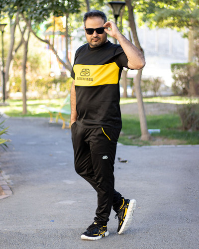 ست تیشرت شلوار مشکی زرد آستین کوتاه Balenciaga مدل 1923