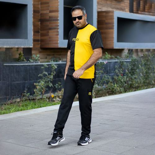 ست تیشرت شلوار مشکی زرد آستین کوتاه FENDI مدل 1922