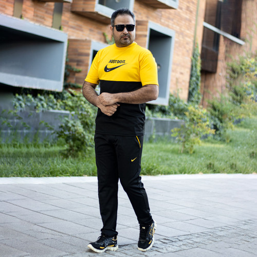 ست تیشرت شلوار مشکی زرد آستین کوتاه نایک مدل 1916