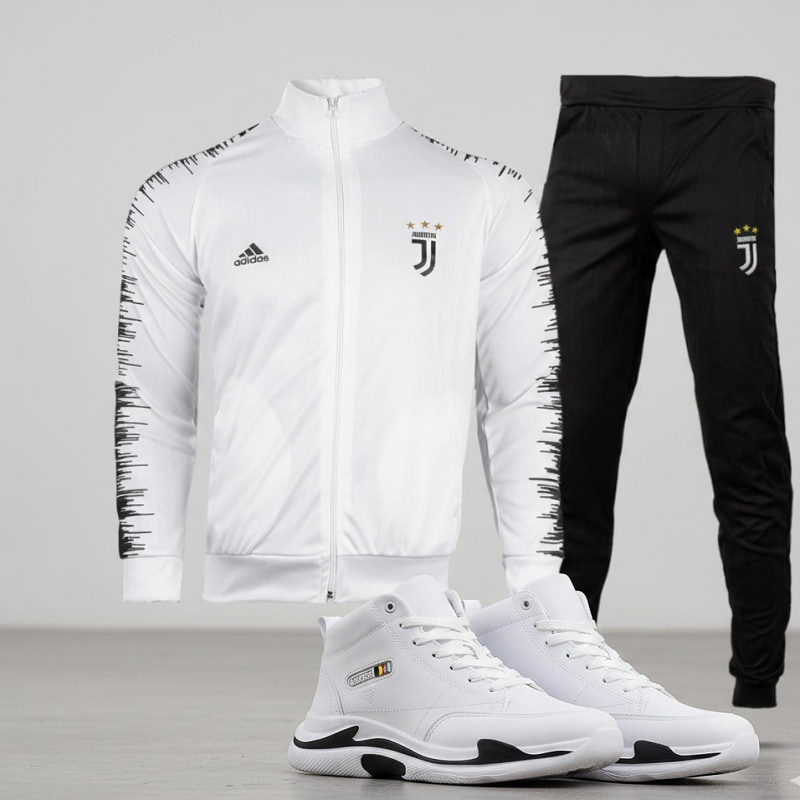 پکیج ست سویشرت شلوار یوونتوس مدل R77 و کفش ساقدار مردانه EMTO سفید