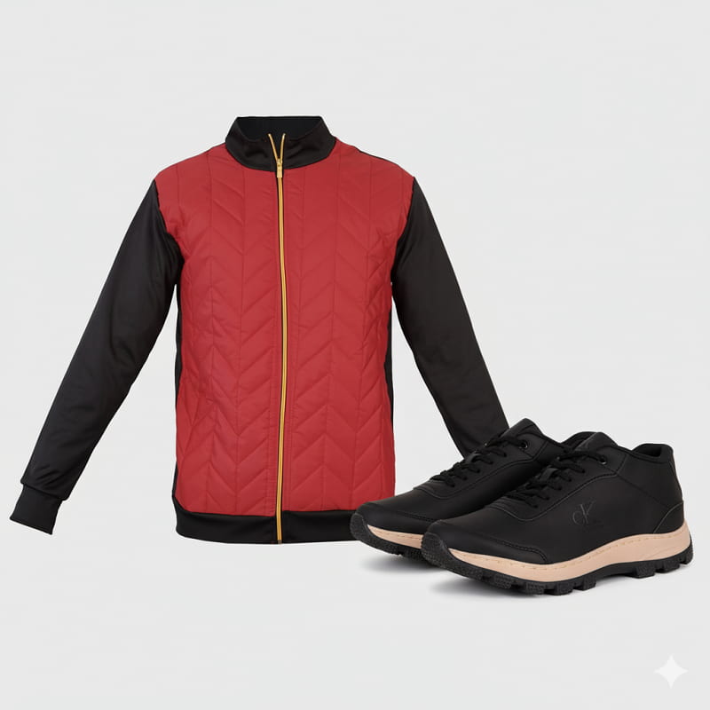 پکیج کاپشن قرمز مدل Homan و کفش مردانه مشکی CK مدل Behdad
