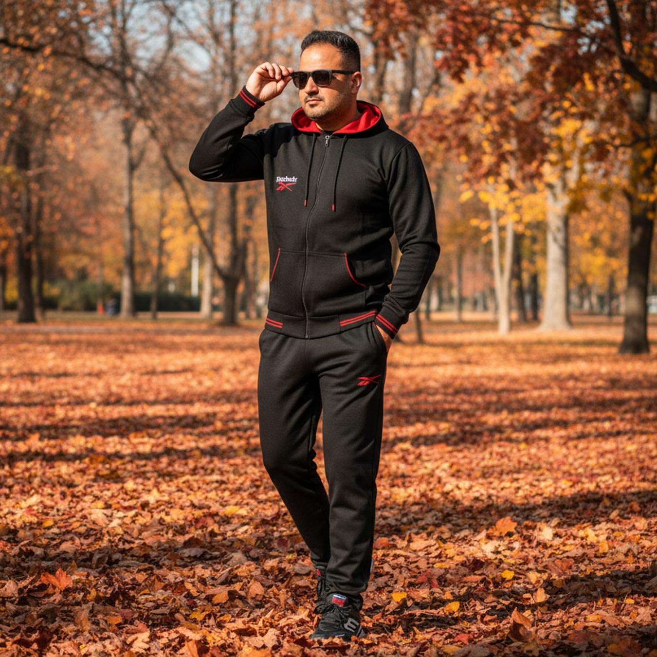 ست سویشرت شلوار کلاهدار مشکی قرمز Reebook مدل 1933