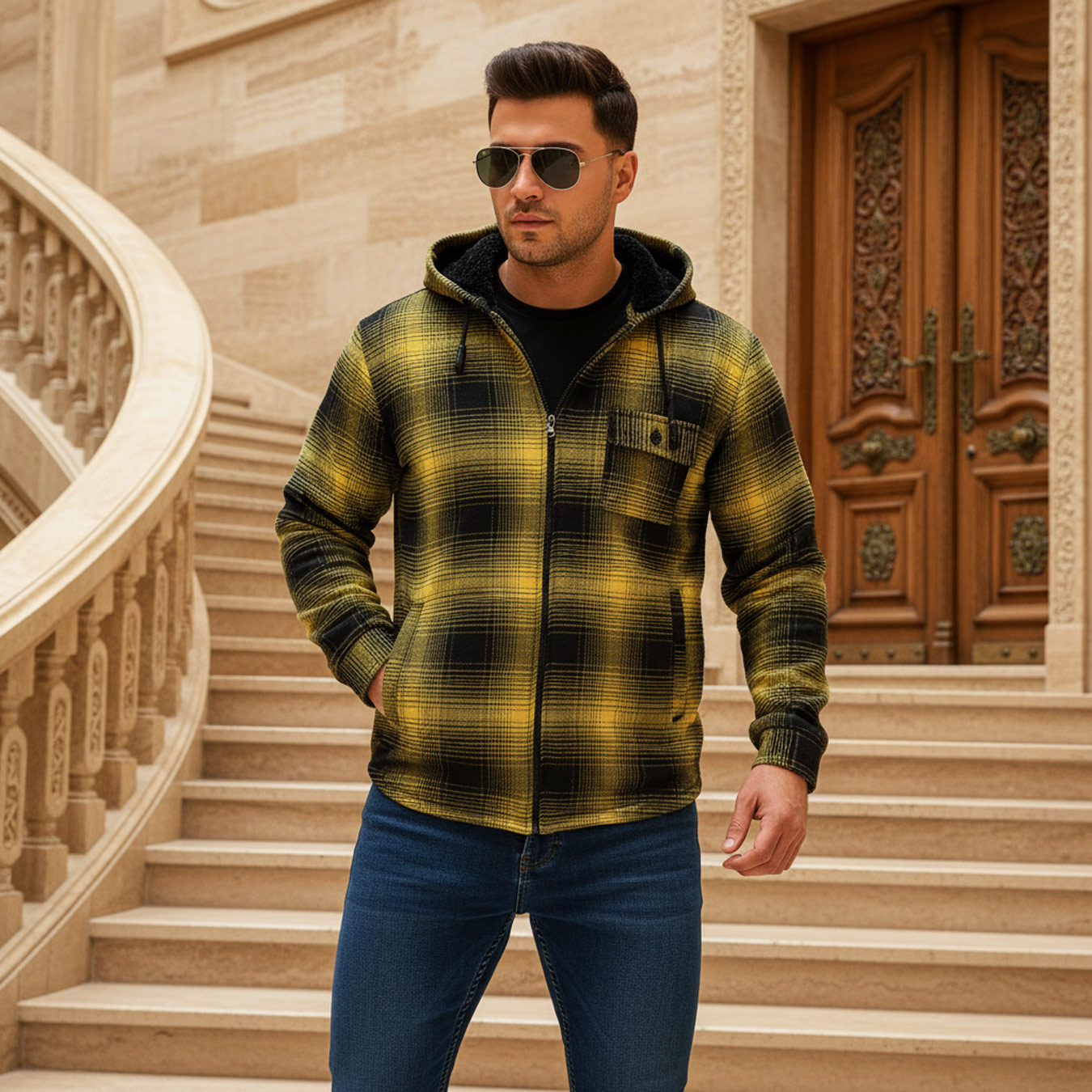 ناموجودکاپشن باکسی کلاهدار مردانه کد 27916