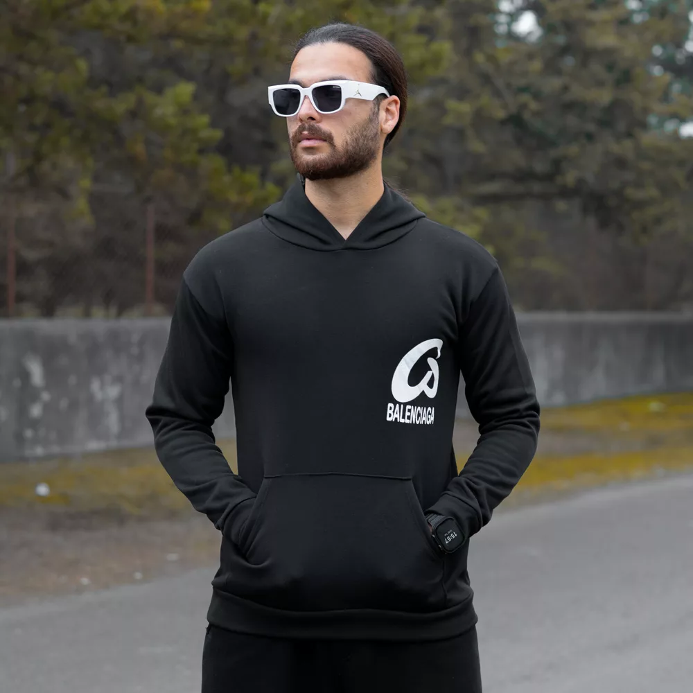 هودی مردانه کلاه دار طرح دار Balenciaga