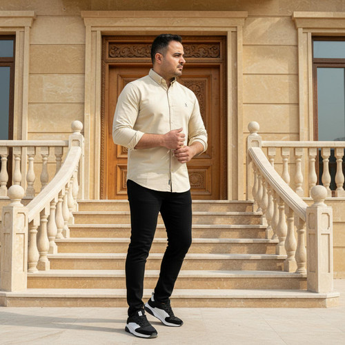 پیراهن مردانه آستین بلند کرم مدل 1934