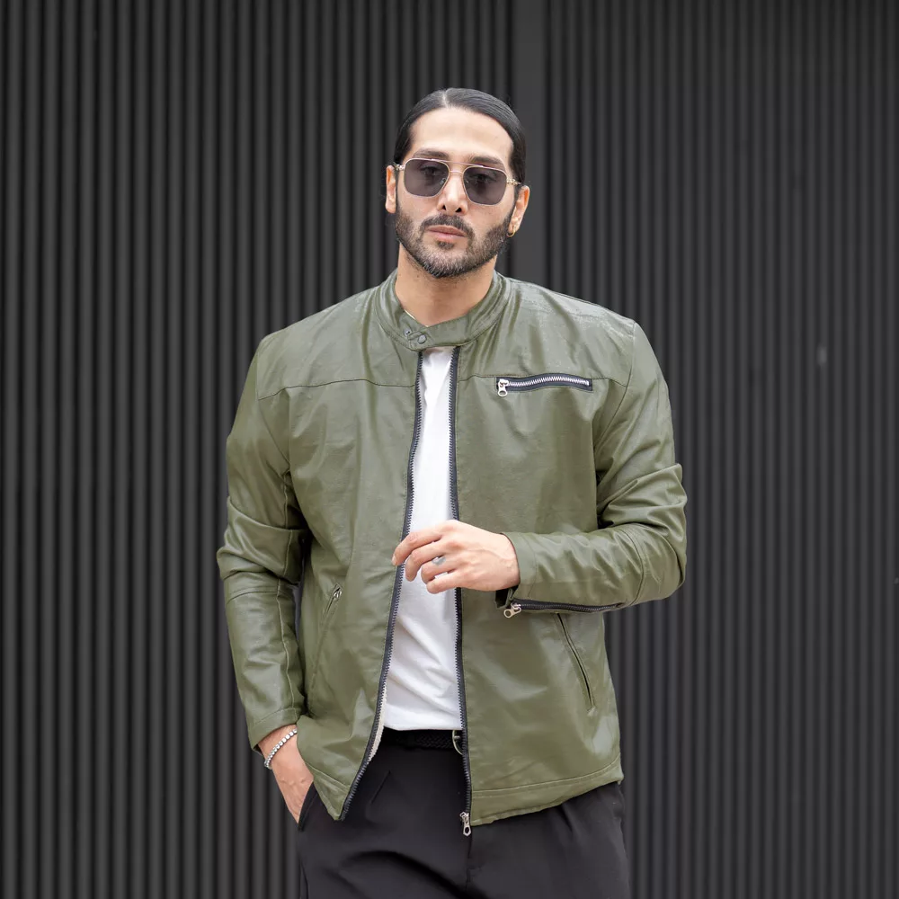 ناموجودکاپشن چرم باکسی مردانه سایز بزرگ زیتونی کد 27705
